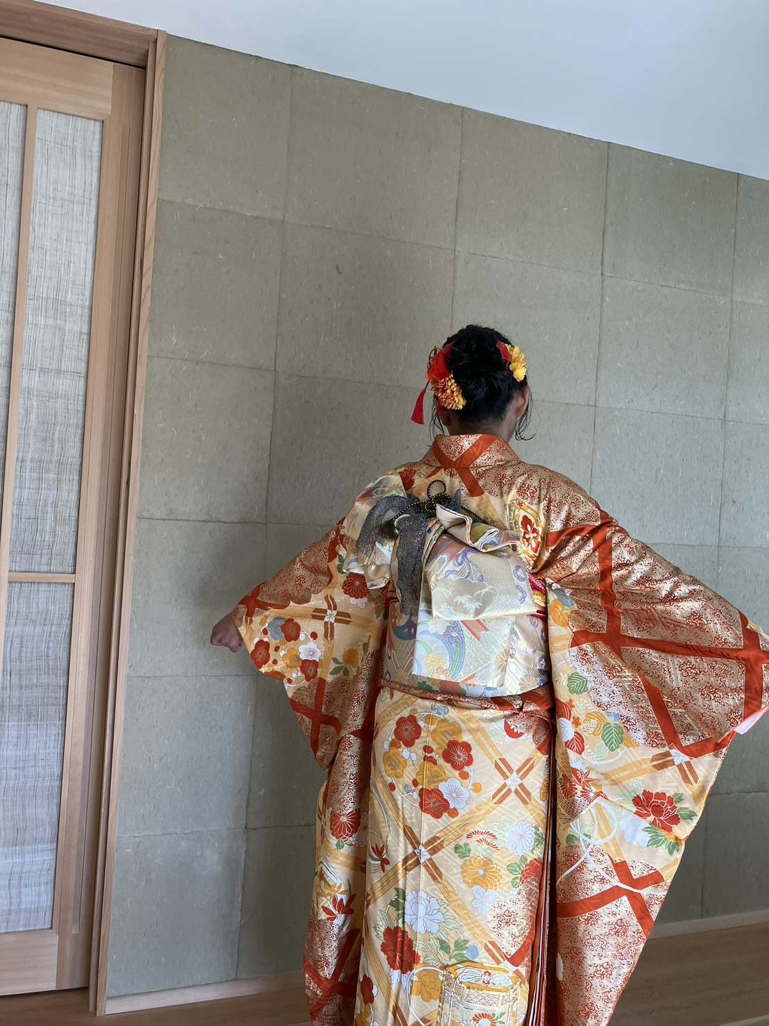 なんとこの写真の中の着物、私の祖母が持っていた物で、母、姉、私が成人式で着用した着物なんです!