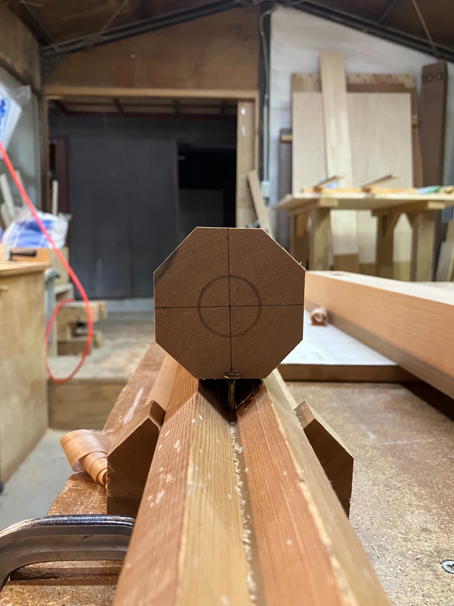 4角形から8角形へ削っていきます。そこから画数を増やしていき、最後丸く仕上がるように削っていきます。
