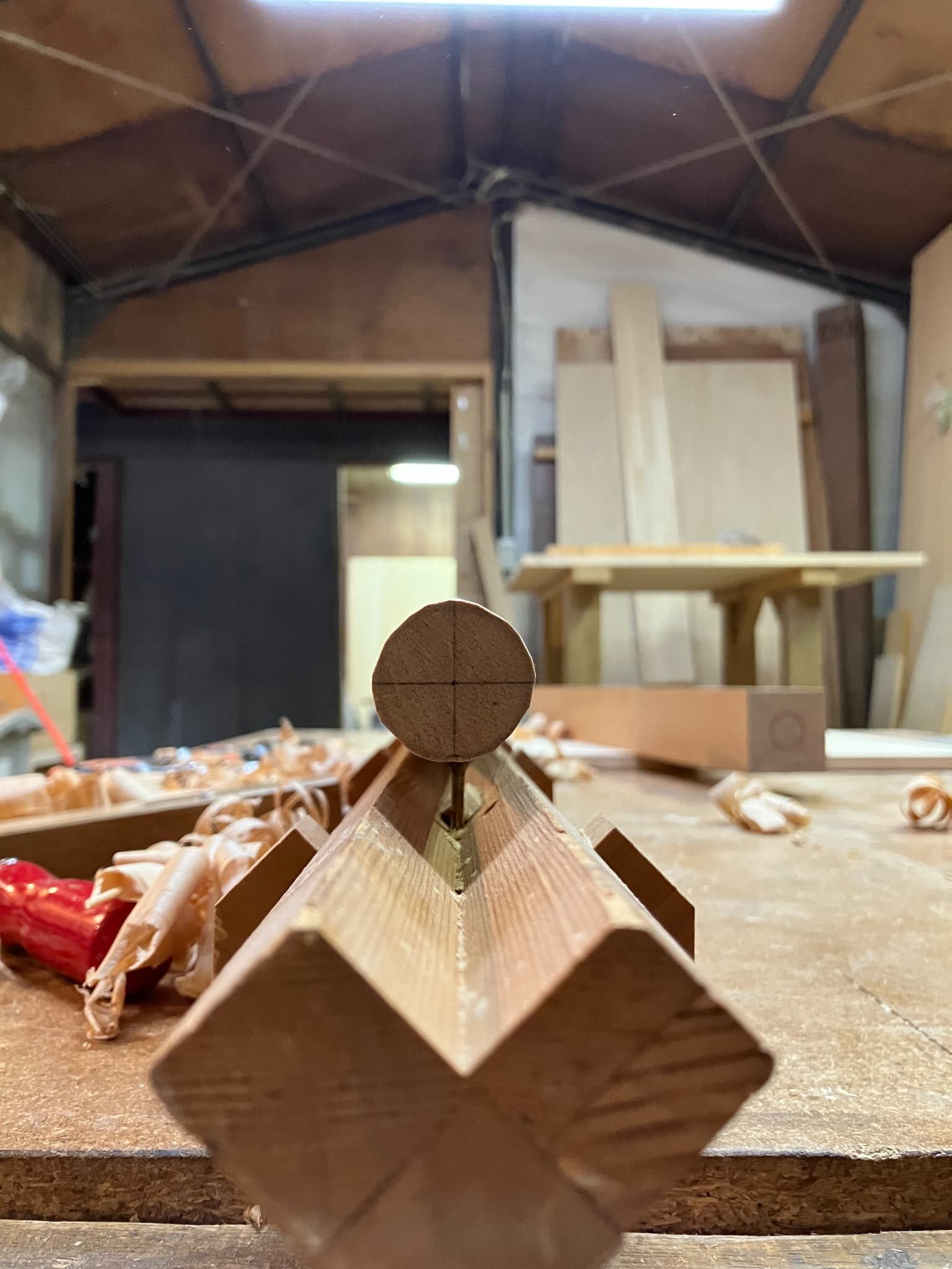 今回は、脚の先を丸く加工していきます。カンナを使い、加工していきます。