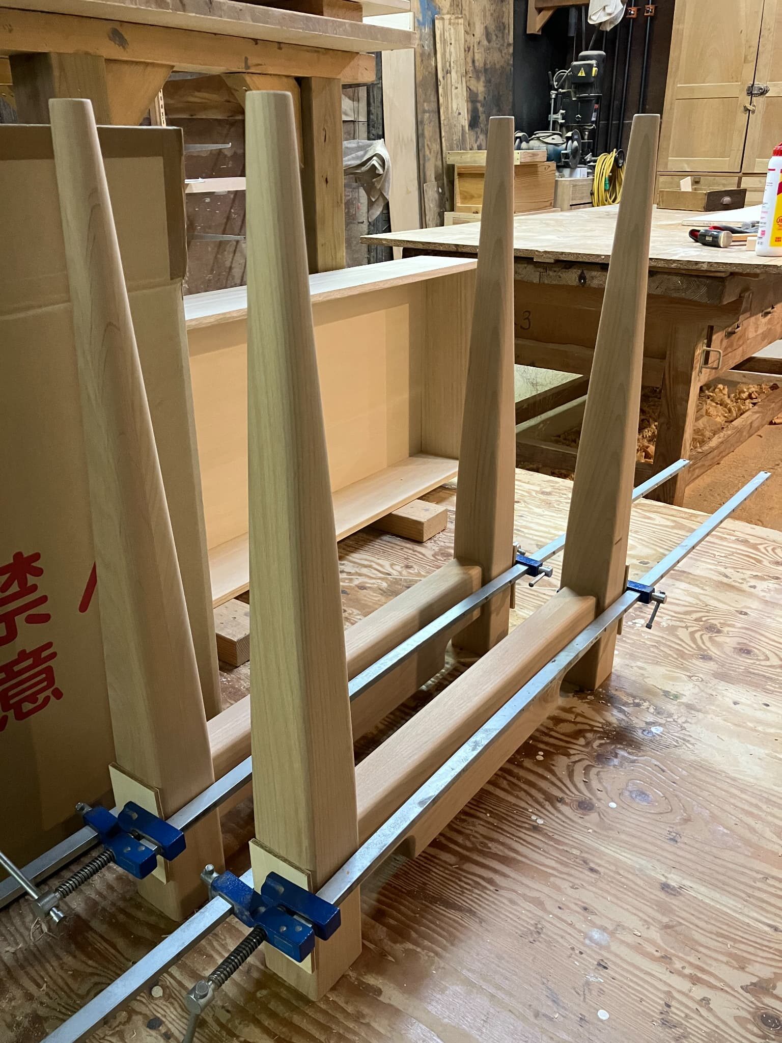 まず1本作って、同じものを4本作ります。そして、違う材料と接着を行い、脚製作完了です。