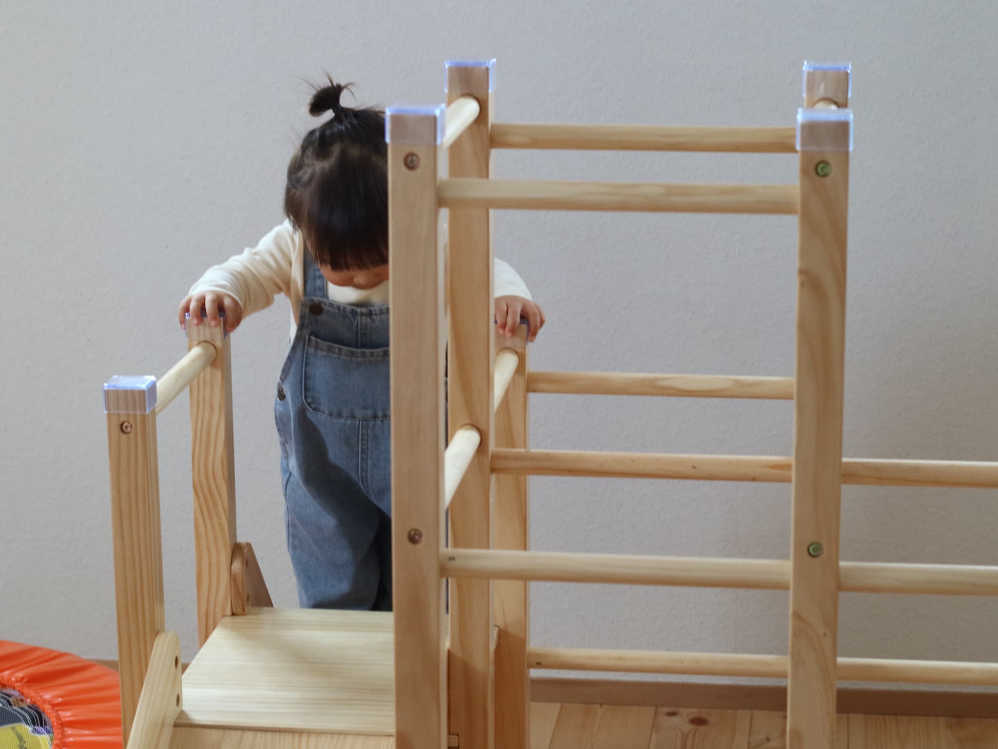 今は木製ジャングルジムとトランポリンを置いて娘さんの遊び場となっています。