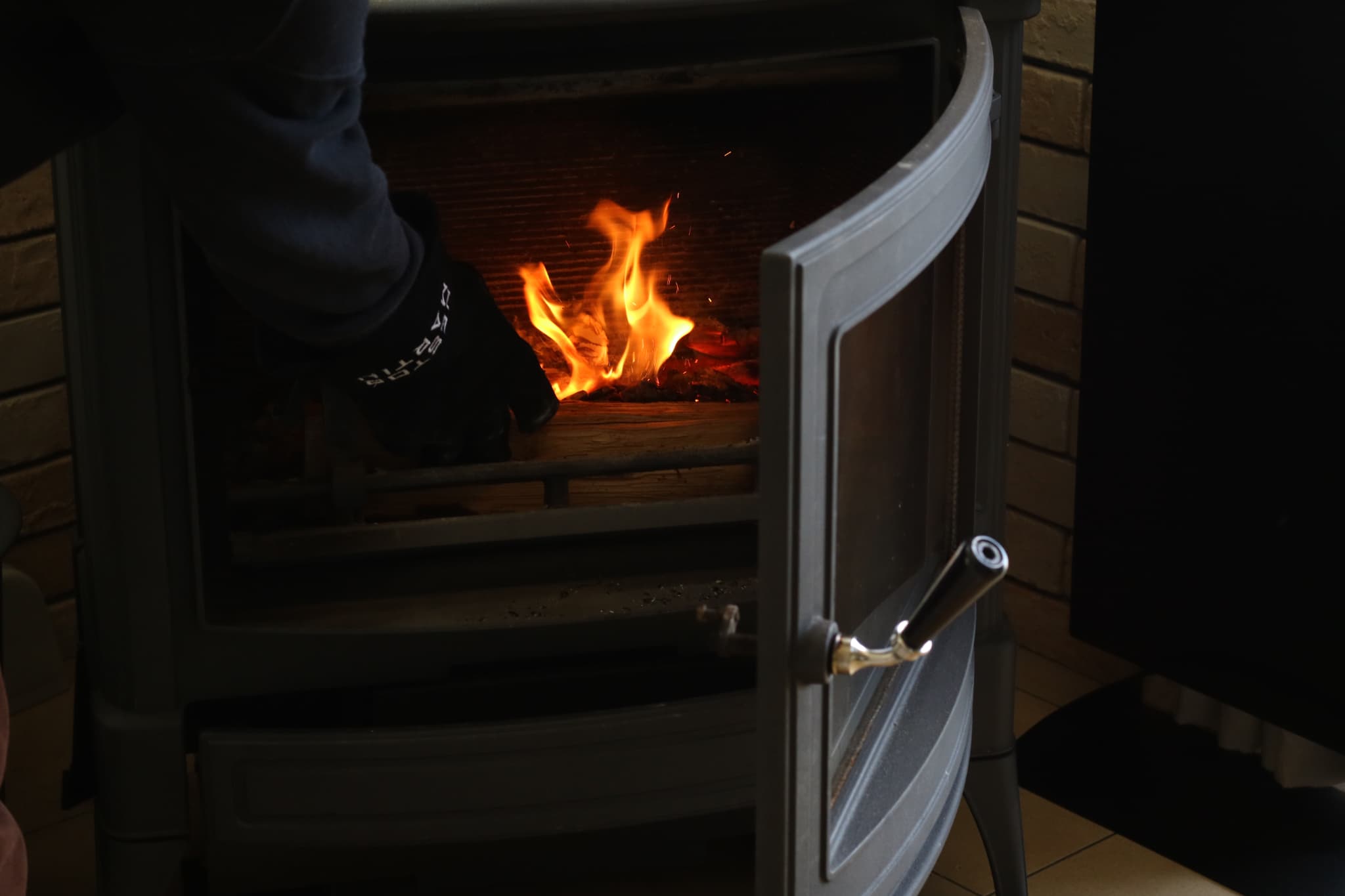 薪割りから火つけなど暖炉の管理担当はご主人。