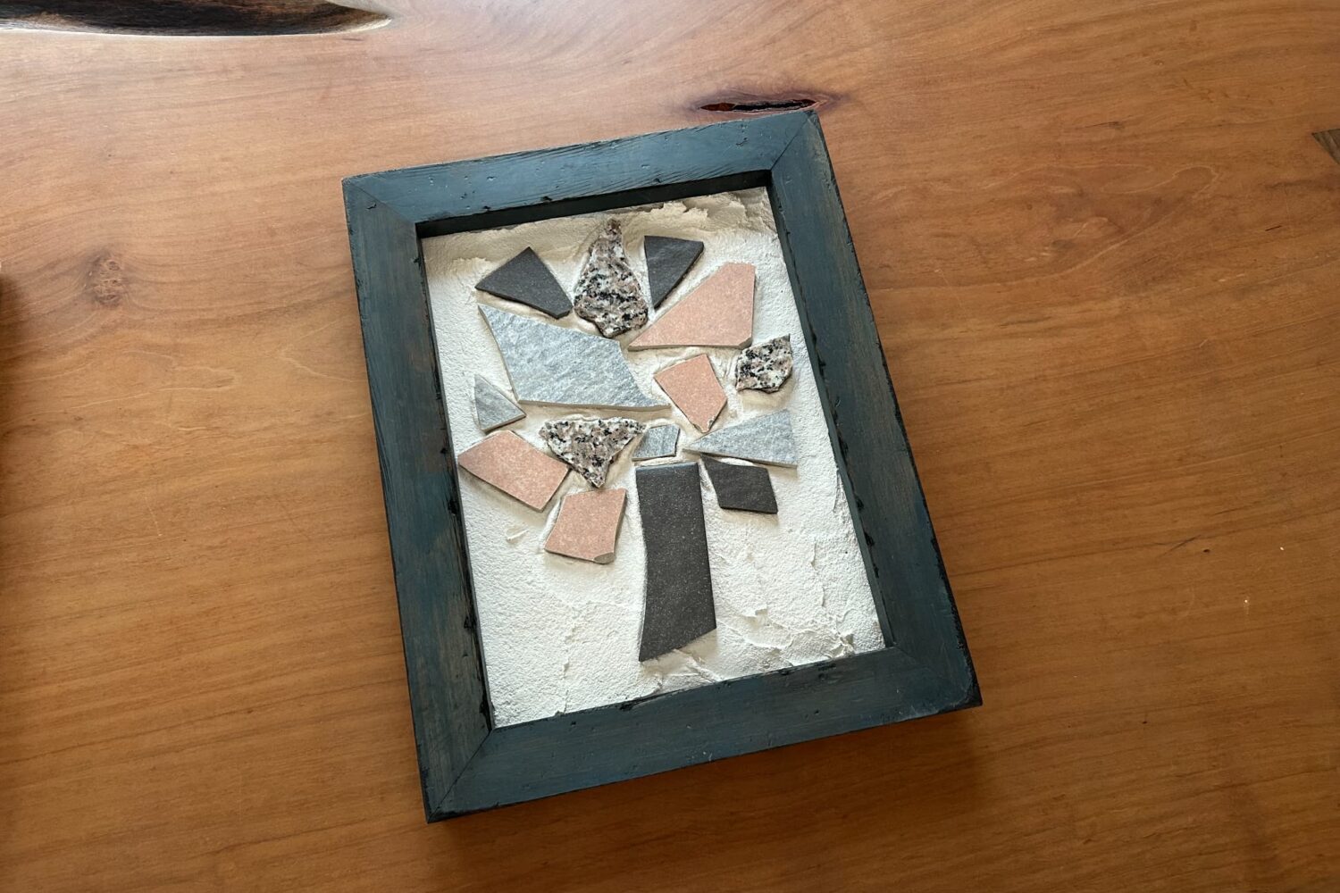 エイジングフレーム内に深呼吸(塗り壁材)を塗り、その上にタイルを使って自由にデザインしていただきます。