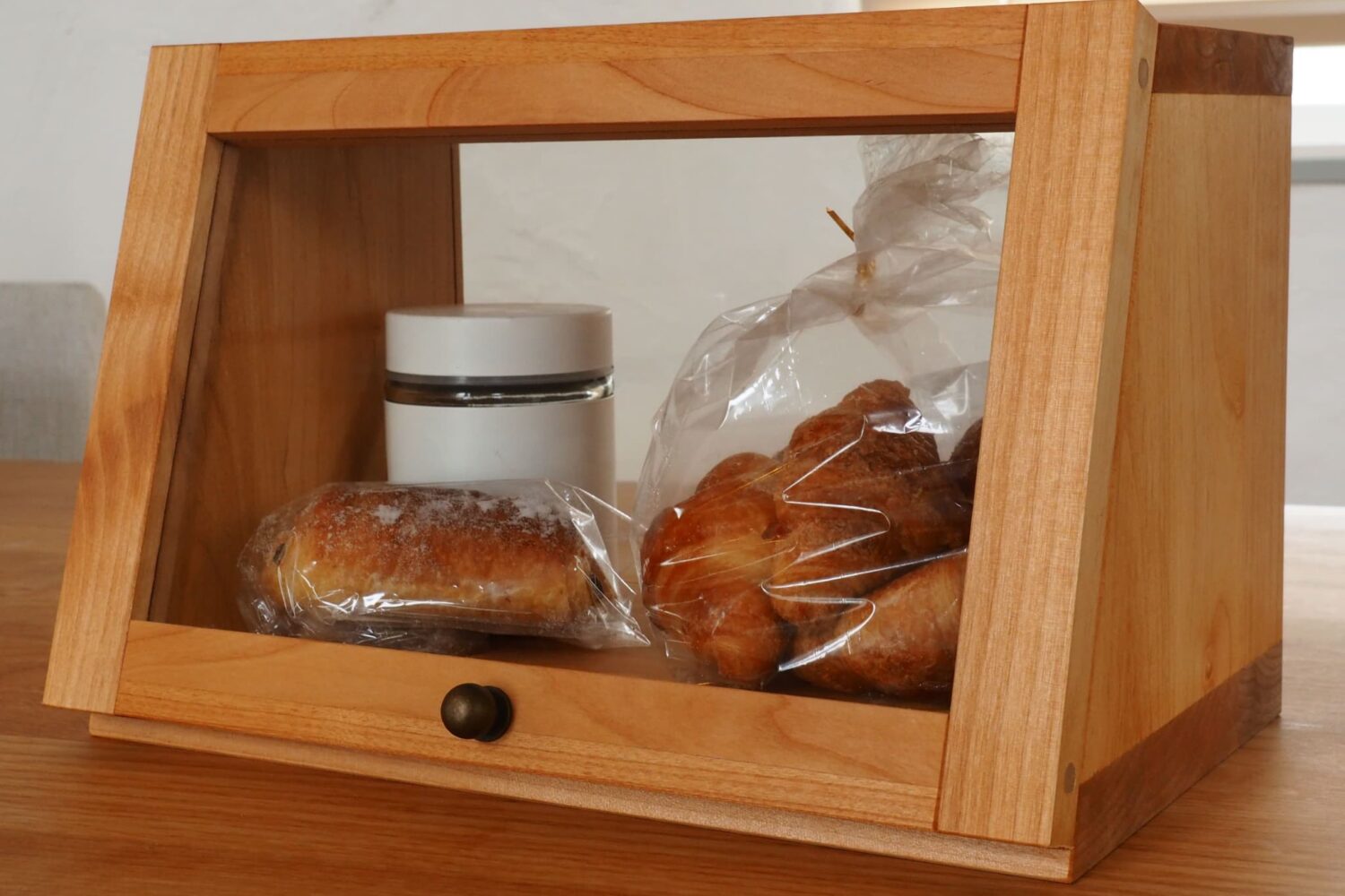 プラスチックやホーロなどと違い木で作るので、調湿効果も高く、パンにとって適度な湿度を保つことが出来ます♪